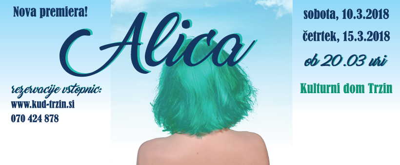 KUD Franc Kotar Trzin - predstava za odrasle ALICA, ponovitev v četrtek, 15. marca 2018, ob 20.03 uri v Kulturnem domu Trzin