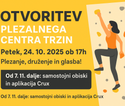 Vabljeni na OTVORITEV PLEZALNEGA CENTRA TRZIN, v petek, 24. oktobra 2025, ob 17. uri.