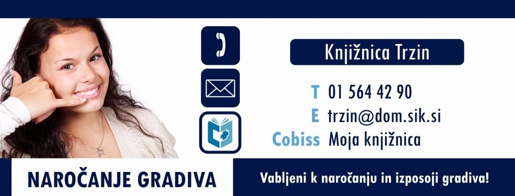 Knjižnica Domžale /T 01 724 12 04; E domzale@dom.sik.si; Cobiss - Moja knjižnica/