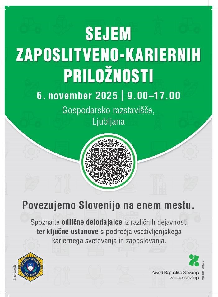 Zavod Republike Slovenije za zaposlovanje organizira vseslovenski Sejem zaposlitveno-kariernih priložnosti, ki bo v četrtek, 6. novembra 2025, od 9.00 do 17.00, na Gospodarskem razstavišču v Ljubljani.